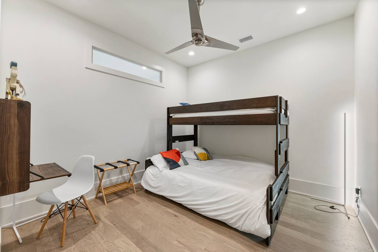 Enjoy 2 bedrooms, 2 full bathrooms and a kitchen stocked with all the essentials. Beds: Bedroom 1: Queen Bed Bedroom 2: Bunk bed with Queen on bottom and XL Twin on top bunk